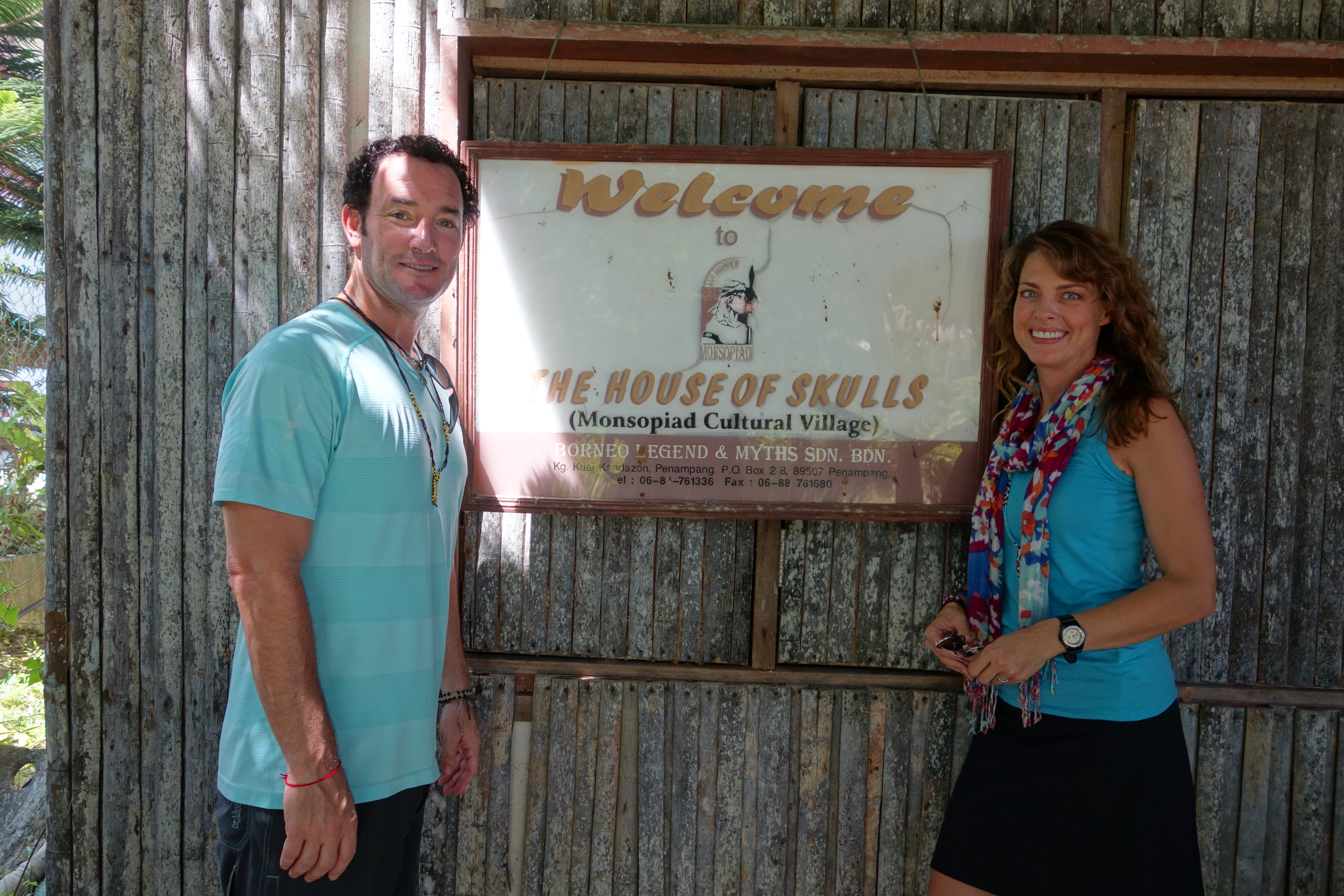 On our Roz day, we learned about Headhunting, which thankfully as of 1929 for one tribe and 1948 for another, no longer exists. It is bad enough worrying about Malaria, cleanliness of food, etc…we’d sure hate to add being beheaded to the list! In a nutshell, a Priestas (always female) is told by the spirits during a ritual how many human heads she needs in order to fulfill the spirits so that she can cure or protect. Then the tribe warriors go out and first paralyze their prey, which are warriors from a different tribe, by way of a blow dart. Once paralyzed they are quickly beheaded and the skulls are cleaned, dried and remain out front of homes, places of worship or around their Village to ward off evil.