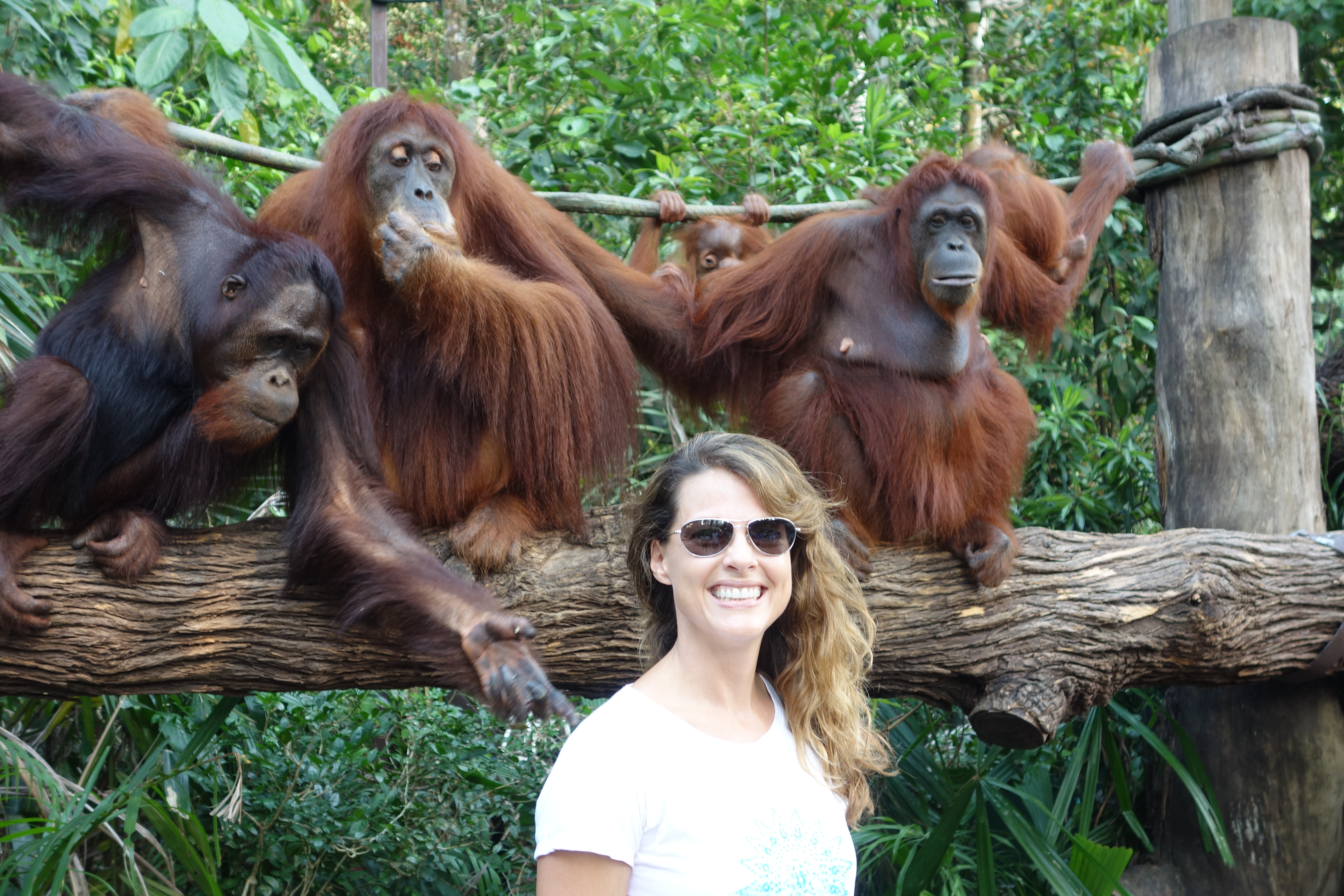 We had a great dinner and he showed us a few local sites. A former Special Operations military guy who felt like DC was too restrictive so he moved to Singapore. Nice idea. We also hit the infamous Singapore zoo. Check out the Orangutan trying to grab my hair. Funny!